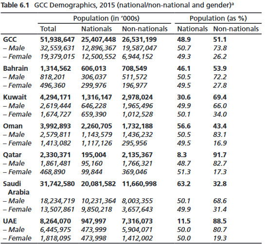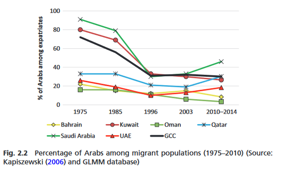 As one can see, ideological and political as well as economic conditions have led to the trends of South Asian migrant laborers far outnumbering Arab migrant workers in the Gulf.