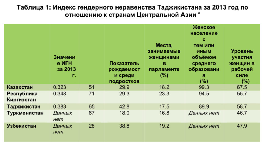 Tajikistan’s Gender Inequality Rating